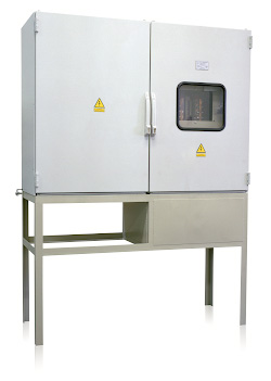 The cables are input in the cabinet from below through sealed lead-ins. Output busbar is led out from behind the cabinet for connection with contact rail.