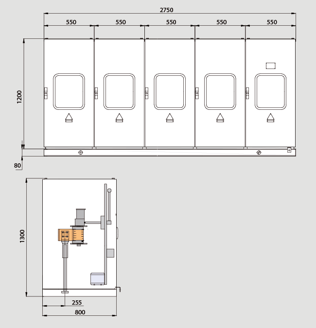 The door is equipped with an overview window for disconnector contacts position observation. Disconnectors are installed in the rear end of compartment; manual drive is in the front end. Front and rear parts of compartment are divided with a panel with overview window. Each disconnector drive axis is controlled from its reducer.