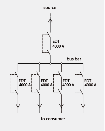 Each compartment is equipped with one disconnector, type EDT 4000, with visible double-break. Each compartment has an individual door, locked with a key.