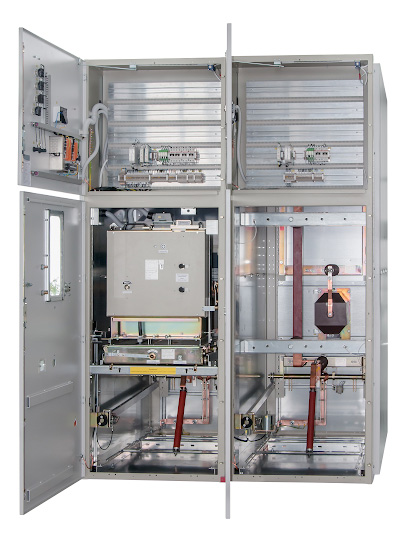 Inspection window, made of multi-layered polycarbonate, is inbuilt into circuit-breaker compartment door. Power busbars are divided by panes and mounted on insulators.